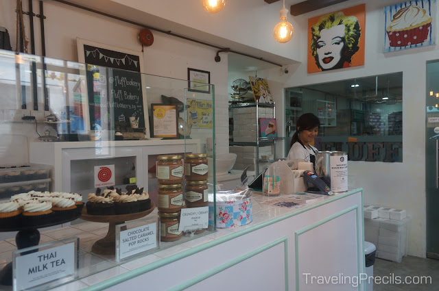 Fluff yang lokasinya di seberang restoran Hjh Maimunah ini bukan kafe, tapi toko kue kecil. Jadi nggak bisa makan di tempat, cup cake-nya untuk dibawa pulang. Menurut saya cup cake nya emang enak bangeeeeet. Rotinya lembut, moist, dan pilihan rasanya oke punya. Saya nyoba yang salted caramel, aduuuuh lezatnya, enak banget digigit sedikit-sedikit biar nggak kemanisan, karena karamelnya meleleh dari dalam kuenya. Pilihan rasa duo precils pun enak-enak, saya sempat nyicipin dikit. Nggak sia-sia keluarin $4 demi sebiji cupcake. Coba kalian follow instagram-nya untuk tahu promo-promonya ya.