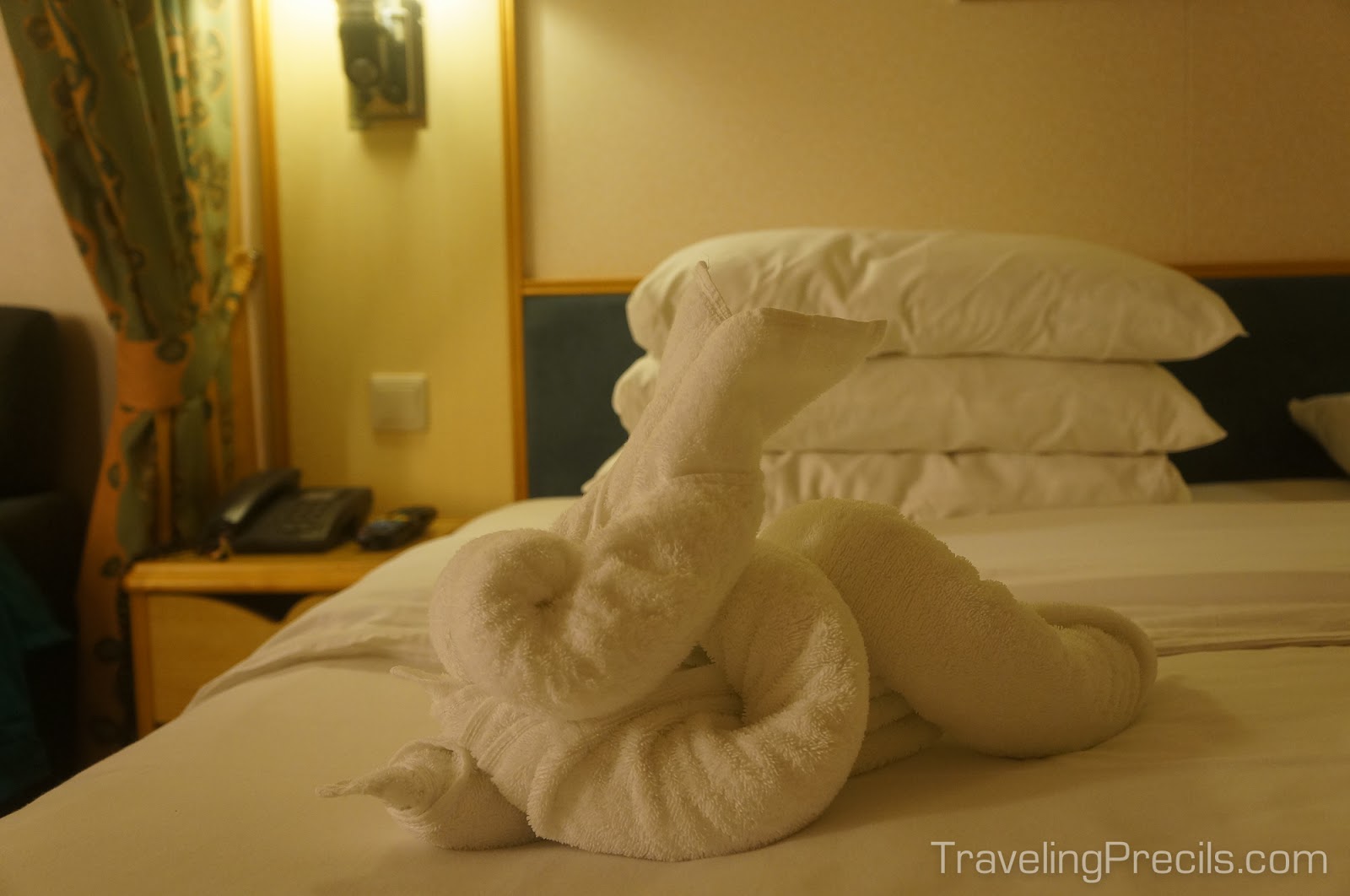 Kami berempat mendapatkan dua kamar (stateroom) di deck 6. Untuk keluarga sebenarnya bisa pesan family room untuk berempat, atau connecting room. Kamar standar mempunyai tempat tidur ukuran king, yang bisa dipisah menjadi dua single bed.