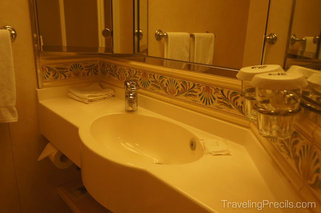 Fasilitas kamar kami ini lengkap seperti layaknya kamar hotel di darat. Ada sofa, televisi yang dilengkapi dengan program untuk anak-anak (Dreamworks), ketel listrik, kopi dan teh, minibar, lemari dan tentu saja pelampung. Kalau ada penghuni anak-anak, room attendant akan memberikan pelampung khusus anak-anak. Colokan listriknya sama dengan di Indonesia, jadi tidak perlu menggunakan konektor.
