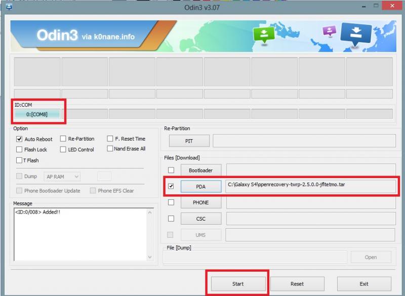 - Hubungkan smartphone Samsung Galaxy J1 2016 ke PC atau laptop hingga terdeteksi oleh Odin. seperti gambar berikut :