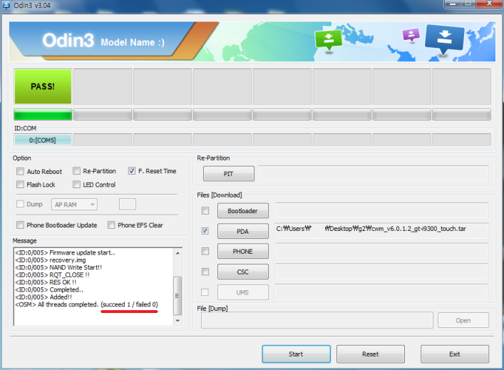 - Pada software Odin, klik PDA kemudian masukkan firmware Samsung Galaxy J1 yang telah di extract tadi