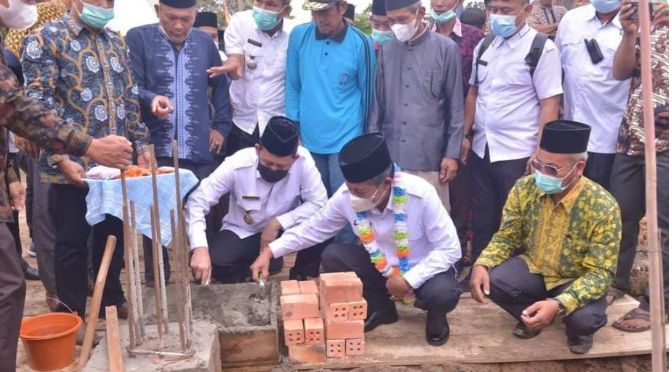 Wakil Bupati Muaro Jambi, Bambang Bayu Suseno (BBS) mendampingi Wakil Gubernur Jambi, Abdullah Sani menghadiri Acara Peletakkan Batu Pertama Pembangunan Masjid Baitussalam Desa Arang-Arang, bertempat di Desa Arang-Arang, Kecamatan Kumpeh Ulu Kabupaten Muaro Jambi, Rabu (2/2/2022).