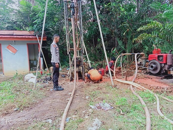 “Hari ini mulai pengeboran pertama. Dan sudah dapat, kira kira 15 meter kedalaman. Untuk pembuatan sumur bor dibutukan waktu kira kira 10 hari,” jelas Kapolda Jambi melalui Kabid Humas Polda Jambi Kombes Pol Mulia Prianto.