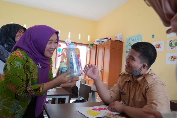 Thehok.id – Bunda PAUD Provinsi Jambi, Hesnidar Haris melakukan gerakan transisi yang menyenangkan di Pusat Layanan Autis (PLA) Sekolah Luar Biasa Negeri (SLBN) 2 Kota Jambi, Rabu (06/09/2023).