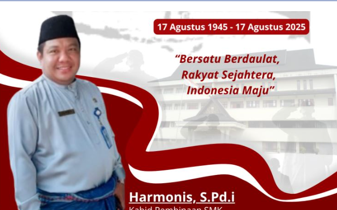 Jambi, Thehok.id – Kepala Bidang (Kabid) Pembinaan SMK Dinas Pendidikan Provinsi Jambi, Harmonis mengucapkan Dirgahayu Republik Indonesia ke-80 tahun.