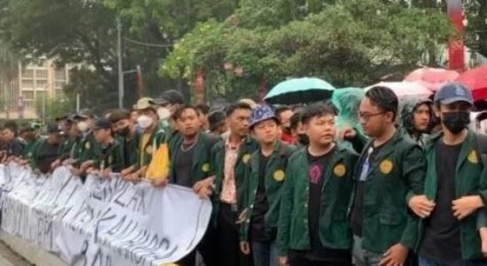 Diguyur Hujan Deras, Massa BEM SI Tetap Lanjutkan Aksi Tolak Kenaikan Harga BBM